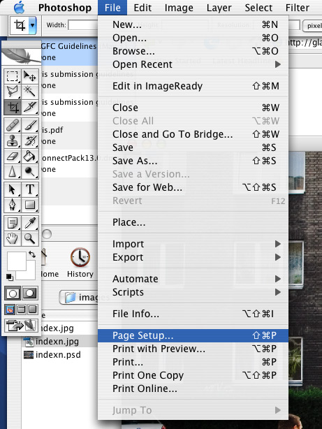 3. Set your paper size (1) and orientation (2) in the page setup dialog. If you are using a roll, select "Custom Paper Size" in the "Page Attributes" menu, and manually input your desired dimensions. Click "OK" when done.