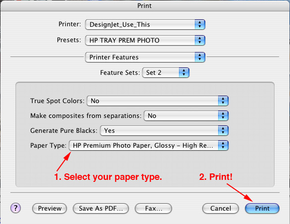 6. Set your paper type (1). This can be found on the box of paper you bought.